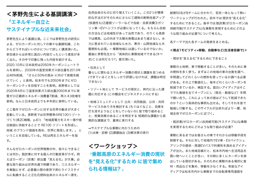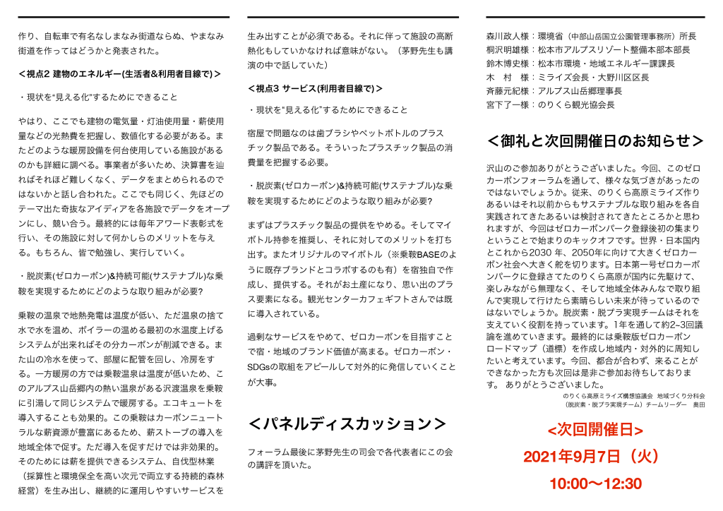 のりくら高原は、環境省の推進するゼロカーボンパークの第一号として、令和3年3月に認定されました。地域ビジョンをまとめた「のりくら高原ミライズ」の課題「ゼロカーボンへの挑戦」として開催されたフォーラムのまとめです。