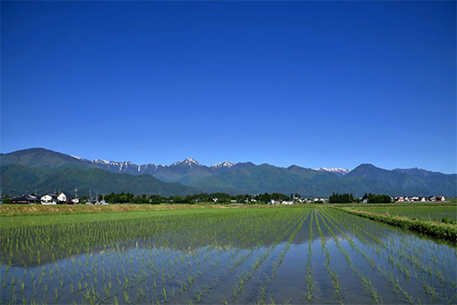 北アルプスの雄大な山々が目の前にそびえ、のどかな田園風景が広がる安曇野。北アルプスから湧き出る湧水にも恵まれています。日本一と言われるわさび田やみずみずしい野菜、おいしいお米にお酒など、食の恵みも豊富です。隠れ家のようなレストランやカフェが数多く点在しているのも魅力のひとつ。ドライブも気持ちがいいですが、里山歩きやサイクリングで、体を動かしながらのびのびとめぐるのもおススメ。アート心をくすぐられる美術館や子どもと楽しめるスポットも多く、誰でもが楽しめる観光エリアです。