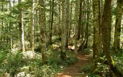 気軽にハイキングできる白樺の径は、その名の通り白樺が多数見られる明るい径。苔むした岩が並ぶ渓流は涼やかで、しっとりとした美しさを楽しんでいただける散策道です。乗鞍観光センターのトレイルヘッドから一の瀬へと抜けるトレイルコースにも含まれています。