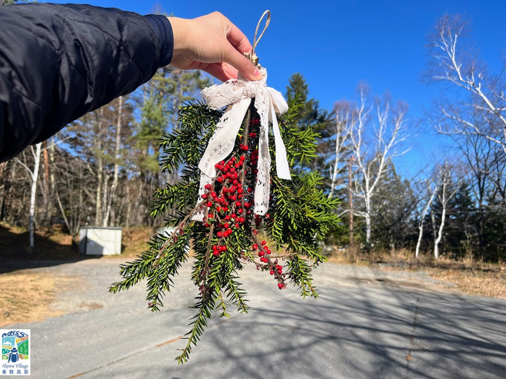 市販のリースも素敵ですが、自分たちで作ってみるのも乗鞍ならでは。