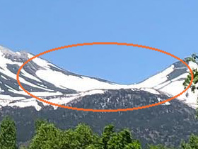 Enjoy Norikura-dake from the foot of the mountain. Let's look for the snow shape.