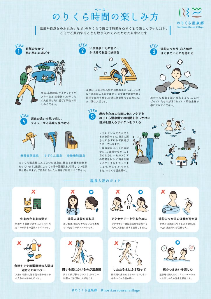 いかがでしたでしょうか。定宿を決めて気に入った温泉を何回も楽しむのも、泉質を変えたり、宿を変えて、雰囲気の異なる温泉を楽しむのもまたいいですね。のりくら温泉郷を気に入った方は、一年に何度も訪れ、「誰にも教えたくないとっておきの場所」と口を揃えるほど、ファンの方々に根強く愛される場所です。そんな風に愛される理由は……?自然との一体感をじわじわと感じられる・そこはかとない心地よさに満ちている・余計なものが何もない…でも本当に必要なものがある!など、感じ方は人それぞれ。ぜひぜひご自身で体感しにいらしてください。