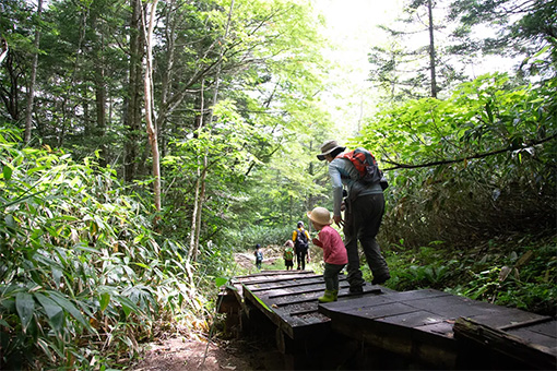 For summer vacation memories or as a subject for your children's free research, why not learn about Norikura's nature and try your hand at making something using mountain materials? The Norikura Nature Conservation Center has exhibits on the nature and history of Norikura, and on Saturdays and Sundays only, it holds the "Yama no Megumi Kobo" (Mountain Blessing Workshop), where visitors can make animals from natural materials.