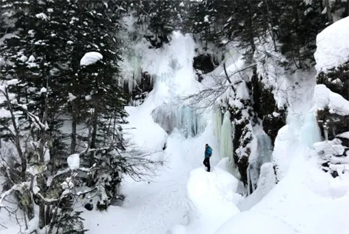 冬季徒步前往圣本塔基并非易事,但绝对是一次难忘的体验,定能激发您的冒险精神。当您深入静谧的针叶林时,冰瀑的雄伟气势将映入眼帘,一片神秘莫测的景象也随之展开。