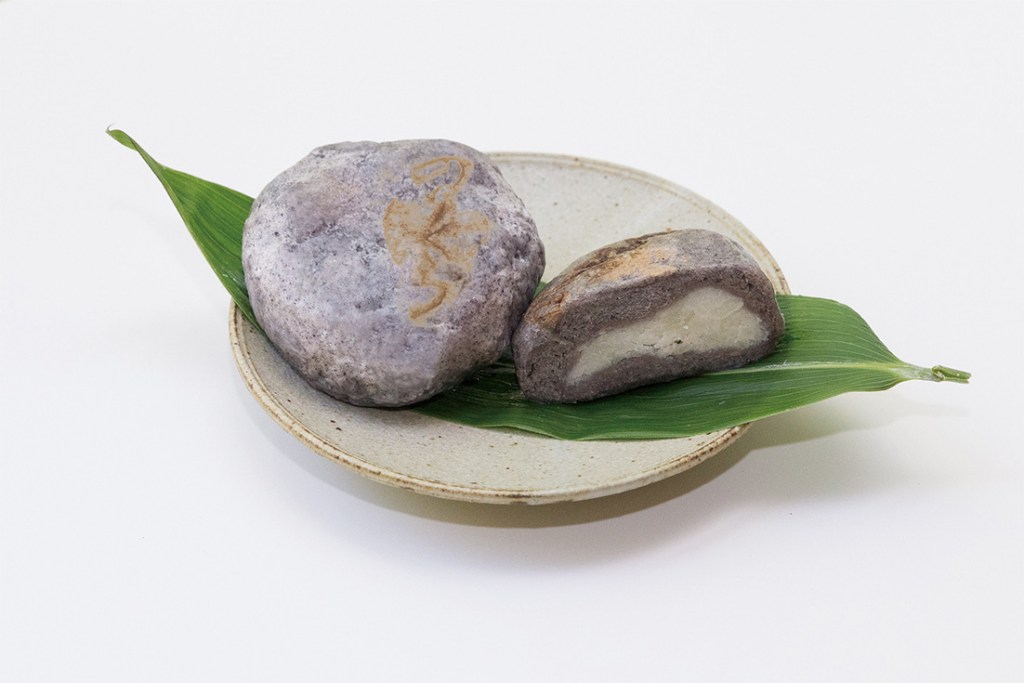 這款烤餅的餡料是用紅薯丸子做的,紅薯丸子是當地盂蘭盆節的傳統供品。餅皮是用黑米揉製的。